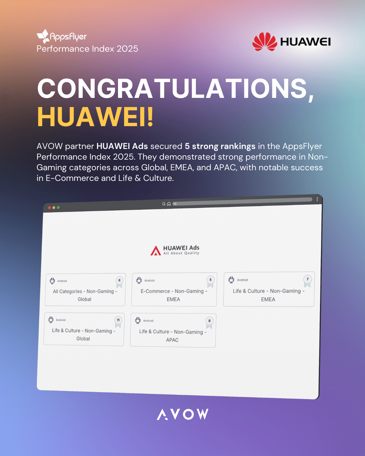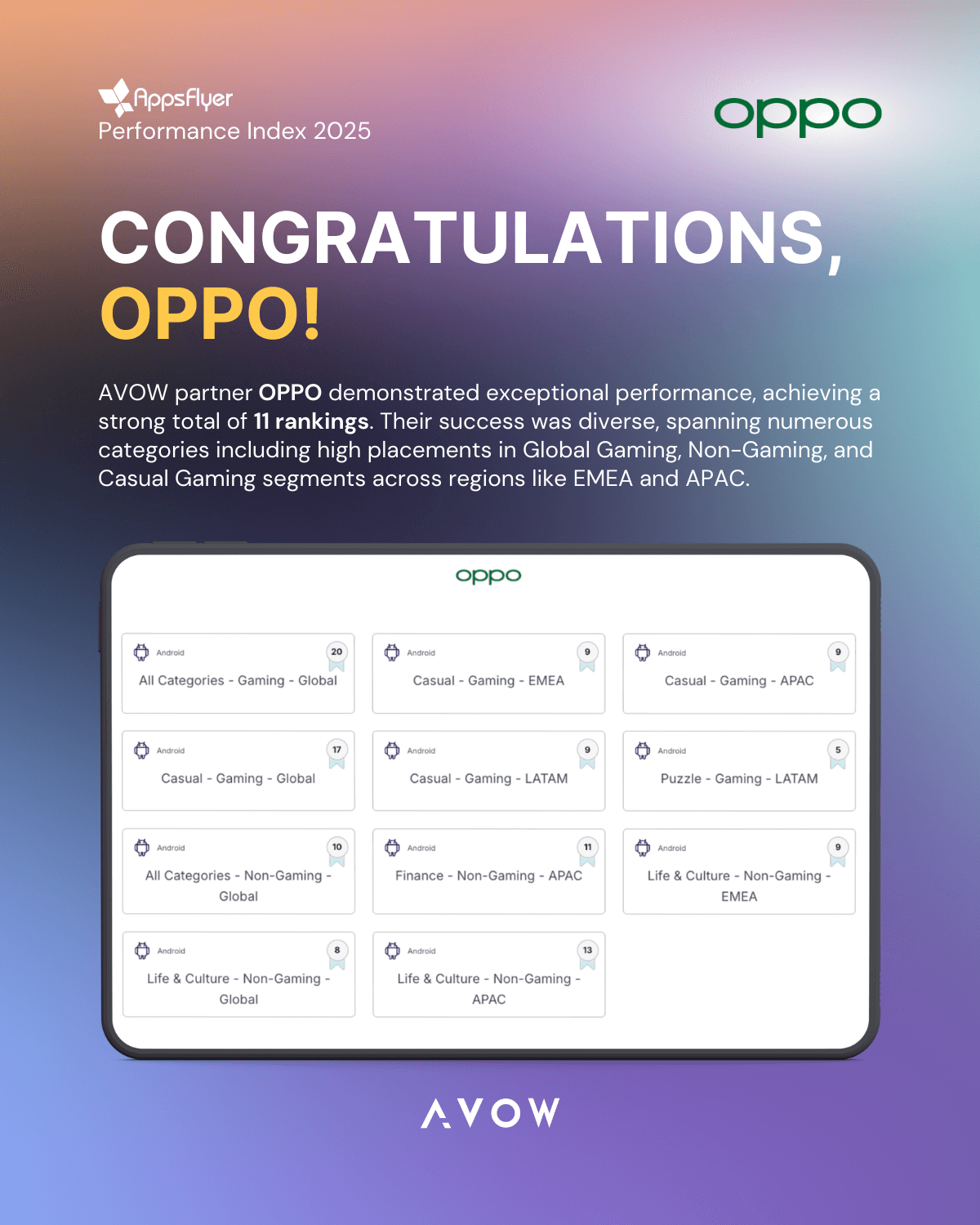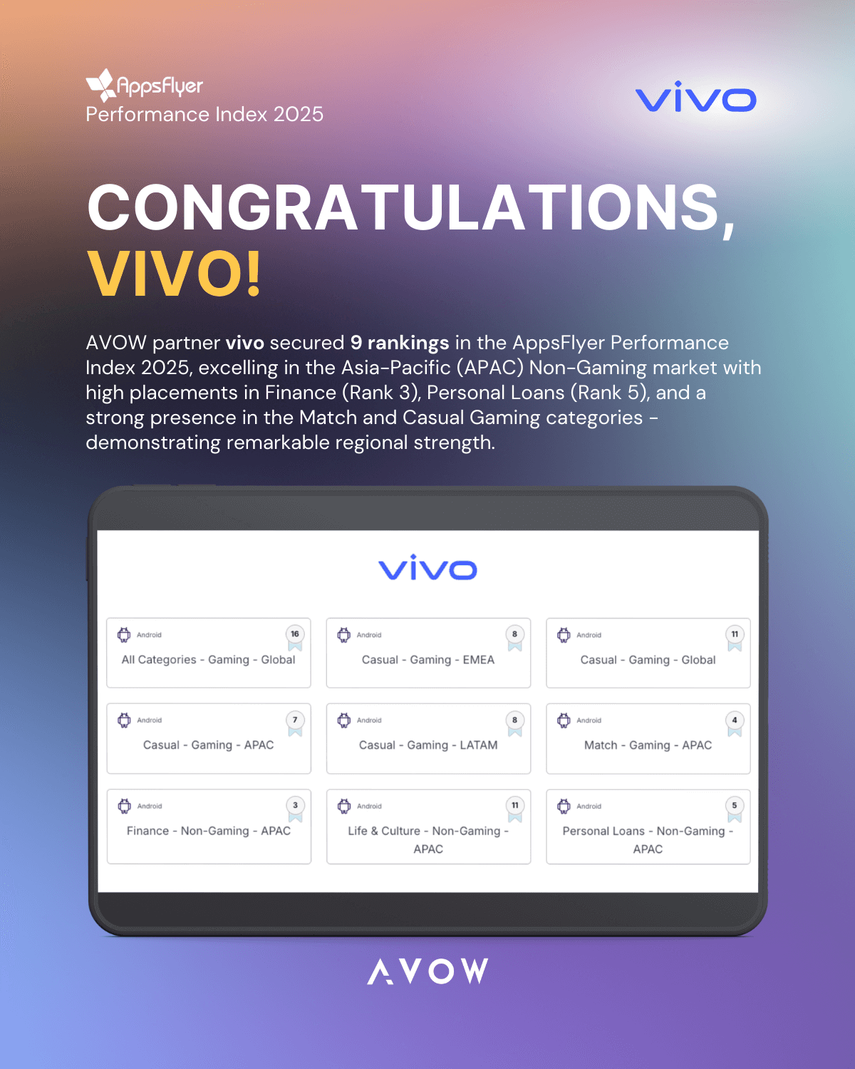 Contextual Strength: This success follows AVOW’s history of top-tier results, including securing a Top 3 position in the Global Finance category of a prior AppsFlyer Performance Index.