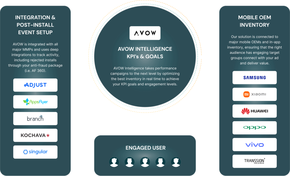 All Mobile OEM on-device inventory is optimized in real-time by our in-house tool AVOW Intelligence and verified by the industry’s leading mobile measurement companies (MMPs).